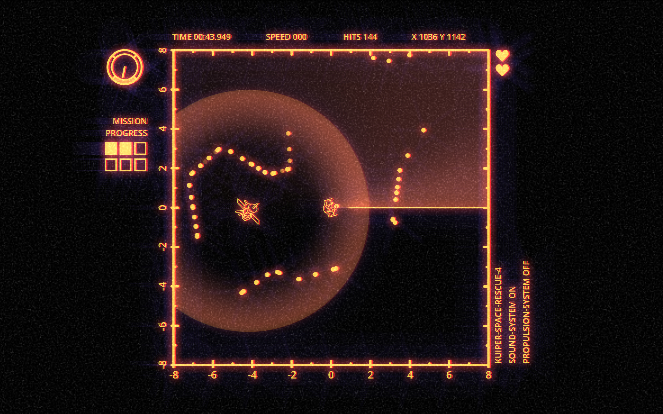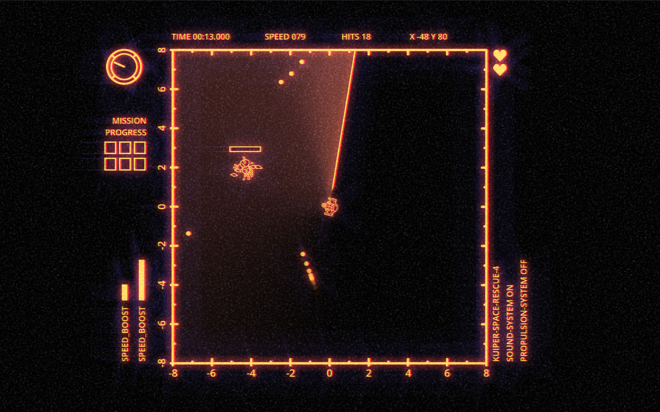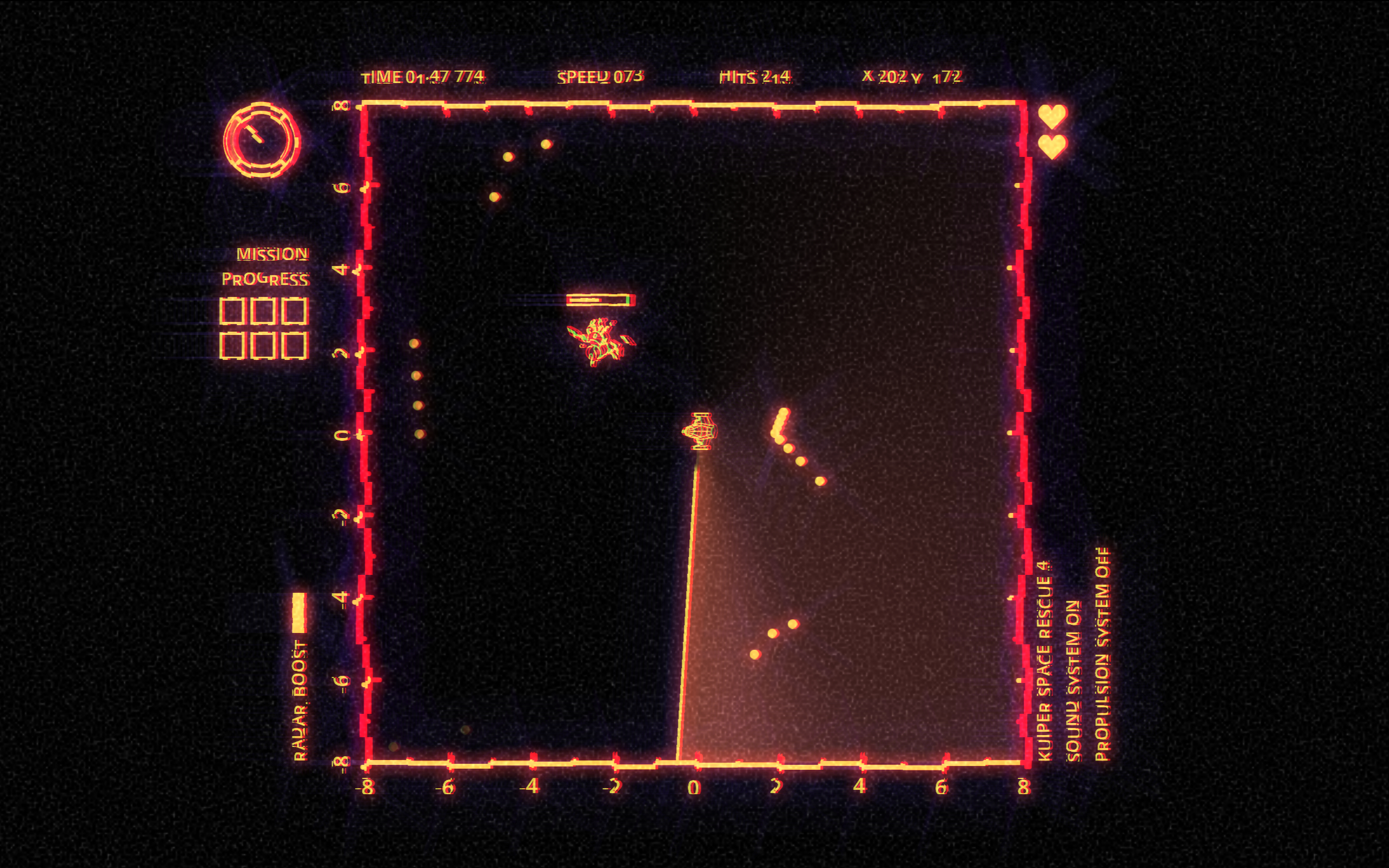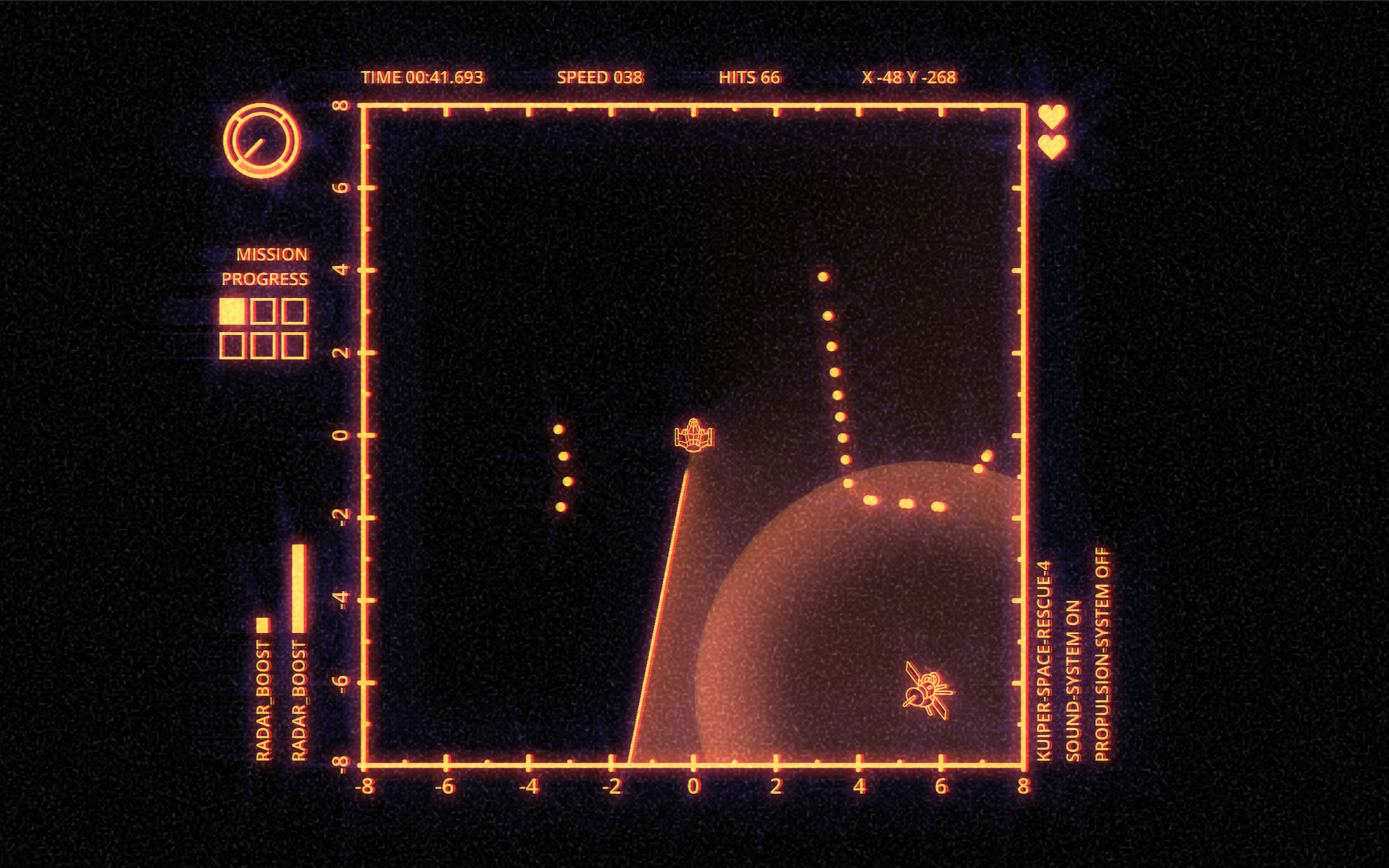 Find your way through an asteroid belt to repair damaged satellites. Be careful, you can only count on your radar to detect imminent collisions!